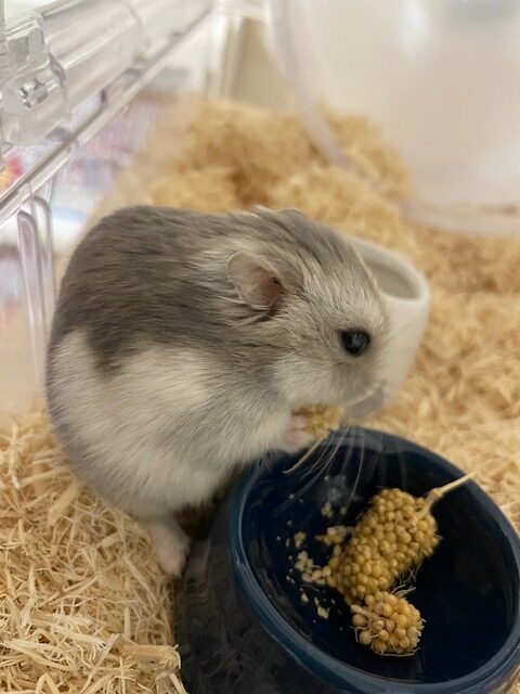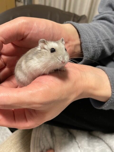 種類はジャンガリアンハムスターのグレー色!オスの大福(だいふく)と言います。