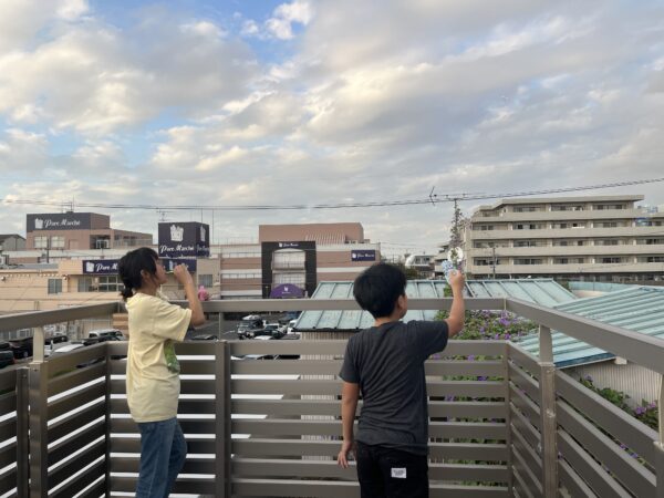 シャボン玉をしたりして、ひらけた視界の中でゆったり過ごせます。