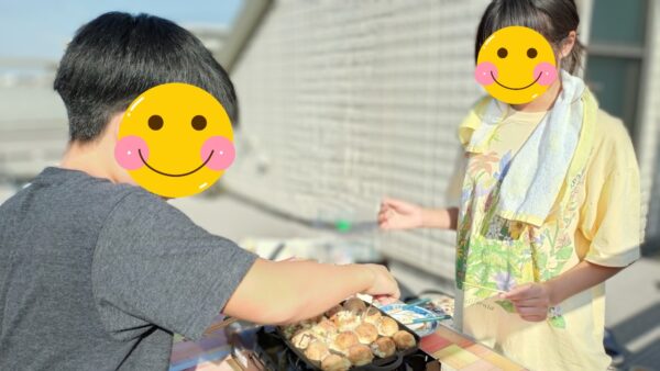 たこ焼き@屋上 は 食べ終わってたこ焼き臭が部屋にこもらないので良いです。
