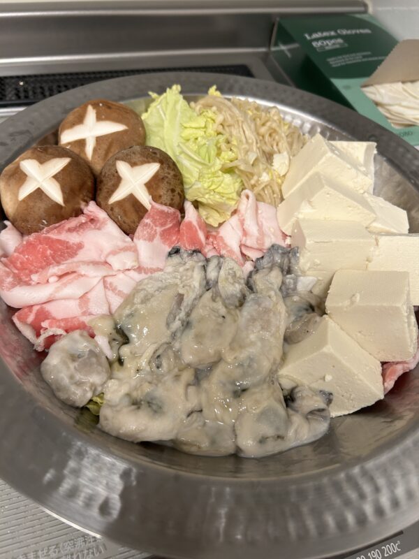 年明けは牡蠣鍋しました~🌊学生時代のアルバイトのおかげで、しいたけの飾り切りができました。数年ぶりでしたが、できるものですね。