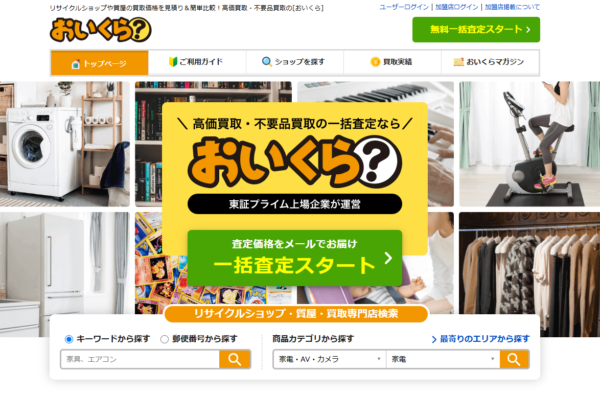 「おいくら」という自治体と連携したサービスなのですが、不要となった家具や家電の情報を登録すると、近隣の買取業者等に一括査定を依頼することができ、出された査定金額や会社の評価等をもとに、依頼する業者を見つけることができるのです。
