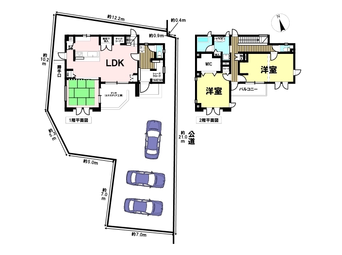 この物件はJR関西本線「蟹江」駅から徒歩27分、2018年(平成30年)03月築の中古一戸建てです。周辺は第2種中高層住居専用地域に該当し、主として中高層住宅の良好な環境を守るための地域です。病院、大学などのほか、1500㎡までの一定のお店などや事務所などが建てられます。アズパークまで徒歩22分 (約1700m)、吉岡クリニックまで徒歩10分 (約800m)、鷹居児童遊園まで徒歩2分 (約120m)。国道302号線まで約2.8㎞(車で約8分)、東名阪自動車道「名古屋西本線料金所」まで約1.9㎞(車で約5分)。伊福小学校まで徒歩10分と子育て世帯にも嬉しい環境です。学校行事の際も車を使わずに済みそうですね。七宝中学校までは徒歩20分です。駅までの道のりはほぼ平坦。区画はほぼ整理されています。敷地は土地面積は237.27㎡(71.77坪)。東側幅員約6.0mの道路に約21.04m接道しています。建物は木造かわらぶき2階建て、間取りは延床面積が119.66㎡の3LDK。駐車スペースは3台分。並列で駐車できるので、車の入れ替えも不要です。全館空調完備で快適に生活ができる住まいです。