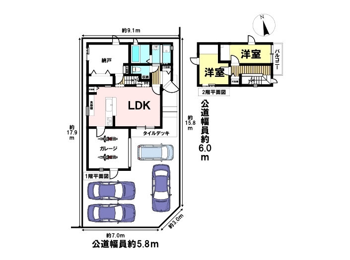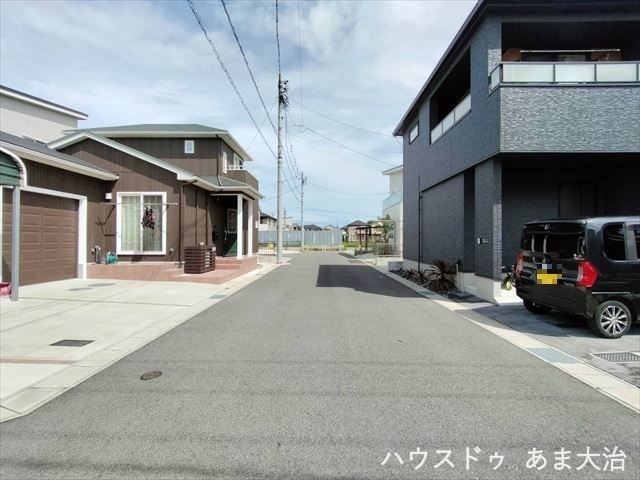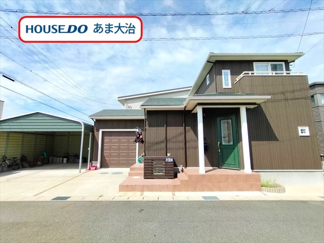 この物件は名鉄津島線「七宝」駅から南方向へ徒歩約34分、2020年(令和2年)11月築の中古一戸建てです。周辺は第一種住居専用地域、住居の環境を守るための地域と定められています。一戸建て・マンションや事業所などが立ち並んでいます。アオキスーパー大治南店まで 1.6㎞(車約5分)、スギ薬局七宝店まで約1.2㎞(車約4分)、みずのホームクリニックまで約650mです。国道1号線まで約8.8㎞(車で約 14分)、名古屋第二環状自動車道「大治北」ICまで約1.4㎞(車で約4分)。大治西小学校まで徒歩約7分、大治中学校まで徒歩約20 分です。駅までの道のりはほぼ平坦。区画はほぼ整理されています。敷地は土地面積は162.69㎡(約49.21坪)。東側幅員約6.5mの道路に約15.81m接道しています。建物は木造2階建て、間取りは延床面積が86.51㎡の2LDK+S。駐車スペースは4台分有ります。広々スペースで来客用としても使えますね。1階にガレージがあるので、バイクの収納にも便利です。色々用途で使用出来そうですね。居室にも使用出来る納戸が有ります。南向きで日当たり良好です。
