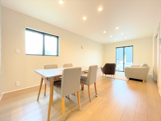 この物件は名古屋臨海高速鉄道「港北」駅から徒歩約14分、愛知県名古屋市港区小碓3丁目にある「アバンティア名古屋市港区小碓3丁目新築分譲住宅」全4区画の1号棟です。名古屋市営バス「当知一丁目」停までは徒歩2分で、日々の移動に便利です。周辺は準工業地域に該当し、主として工業の業務の利便の増進を図る地域で、どんな工場でも建てられます。住宅やお店は建てられますが、学校、病院、ホテルなどは建てられません。アミカ港当知店まで約430m、V・ドラッグ当知店まで約360m、浅野眼科まで約110mなど、各種施設が徒歩圏内に揃っています。明徳小学校まで徒歩約5分、当知中学校まで徒歩約7分で子育てにも安心な環境です。学校行事の際も車を使わずに済みそうですね。敷地は約101.62㎡(約30.74坪)、南側幅員約8.0mの道路に約5.91m接道しています。建物は木造2階建て・間取りは延床約98.07㎡の4LDK。駐車スペースは2台分で並列駐車も可能です。全居室収納付きで、各部屋をすっきりと保てます。太陽光発電システムやEV車充電設備も完備されており、環境にも配慮した物件です。