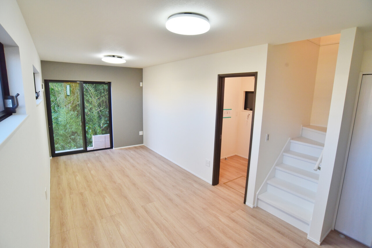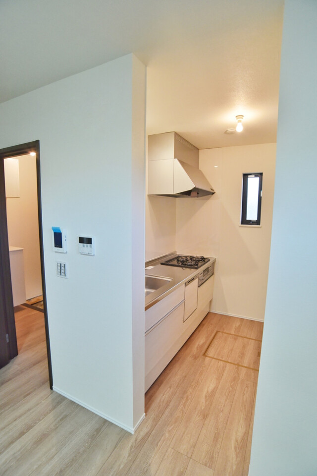この物件は、2024年(令和6年)11月築(完工済)の木造2階建て新築一戸建てです。現在、即時の引渡しが可能です。主要な用途地域は工業地域に該当します。工場や倉庫の建設が認められている地域ですが、住居も建てられます。北西側幅員約3.3mの公道に接道しています。建物は木造2階建て、間取りは3LDK。駐車スペースは普通車1台分確保。LDKはリビング階段のある開放的な間取りです。全室フローリングで、お掃除も簡単です。アイランドキッチン、システムキッチン、コンロ三口など、お料理がしやすい設備が充実。水回りは、バス1坪以上、浴室に窓、温水洗浄便座、浴室乾燥機、洗髪洗面化粧台など、機能が充実しています。全居室収納、シューズボックス、床下収納など収納も確保されています。モニタ付インターホン、火災警報器/報知機など、セキュリティや安全面にも配慮されています。省エネ給湯器を採用しており、フラット35Sにも対応しています。