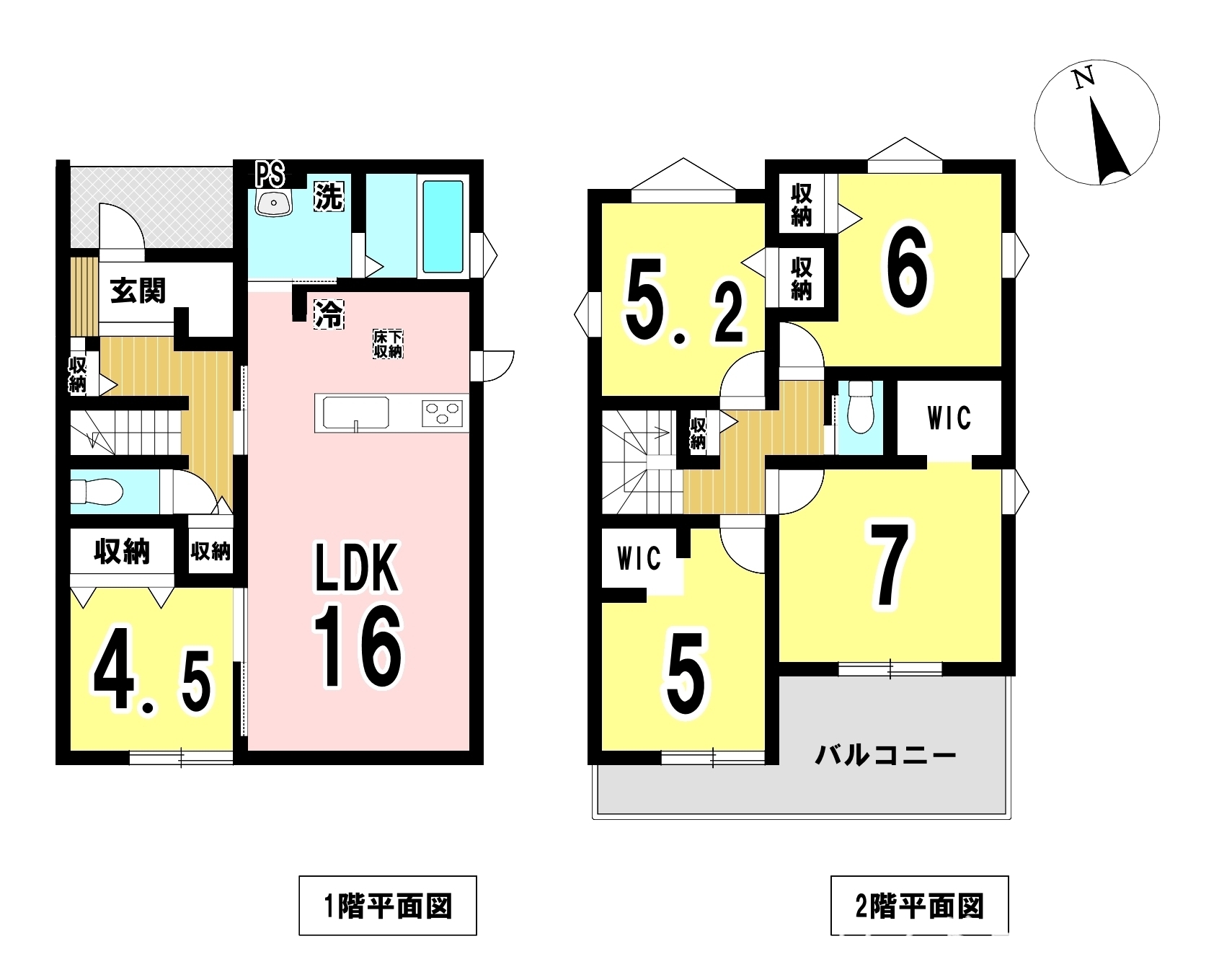 この物件は名鉄犬山線「石仏」駅から南方向へ徒歩約11分、愛知県一宮市千秋町加納馬場にある「千秋町加納馬場第7 新築分譲住宅」全4棟の2号棟です。綿半フレッシュマーケット千秋店まで約1430m、マツモトキヨシ千秋店まで約1420m、ローソン一宮千秋町加納馬場店まで約530m、ひまわりクリニックまで約1140m、佐野公園まで約1180m、千秋児童館まで約1040m、千秋交番まで約1090mなど、各種施設が揃っています。千秋東小学校まで徒歩約7分、千秋中学校まで徒歩約9分で子育て世帯にも安心です。駅までは平坦な道のりで、区画整理も進んだエリアです。敷地は約169.13㎡(約51.16坪)、北側幅員約3.0mの道路に約8.0m接道しています。建物は木造2階建て、間取りは延床約106㎡の5LDK+S。駐車スペースありで並列駐車も可能。主要採光南向きで全室フローリング、システムキッチン、カウンターキッチン、オートバス、2WAYバルコニー、ウォークインクローゼット、床下収納、モニタ付インターホンなど充実の設備を完備。