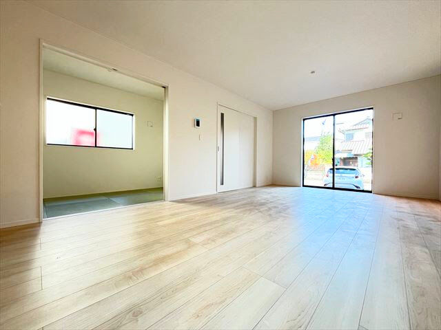 この物件は名古屋臨海高速鉄道「荒子川公園」駅から徒歩約30分、名古屋市港区宝神町にある「名古屋市港区宝神町第2 全3棟」の3号棟です。周辺は第一種住居専用地域に該当し、住居の環境を守るための地域で、3000㎡までの店舗・事務所・ホテルなどが建てられる地域です。多加良浦保育園まで徒歩約6分、宝神第一公園まで徒歩約5分、名古屋惟信郵便局まで徒歩約5分、ファミリーマート甚兵衛通店まで徒歩約8分、服部内科小児科医院まで徒歩約6分、各種生活施設は徒歩圏内に揃っています。神宮寺小学校まで徒歩約5分、宝神中学校まで徒歩約18分の距離です。敷地は約180.49㎡(約54.59坪)、東側幅員約7.2mの道路に約9.0m接道しています。建物は木造2階建て・延床約98.01㎡の4LDKで、駐車スペースは普通車2台分確保。都市ガス・システムキッチン・浴室乾燥機・室内洗濯機置場・火災警報器・ディンプルキー・モニタ付インターホン・LDK18畳以上・複層ガラス・納戸・床下収納・ルーフバルコニーなど、快適な設備が充実しています。建築は2025年10月予定で、フラット35Sにも対応しています。