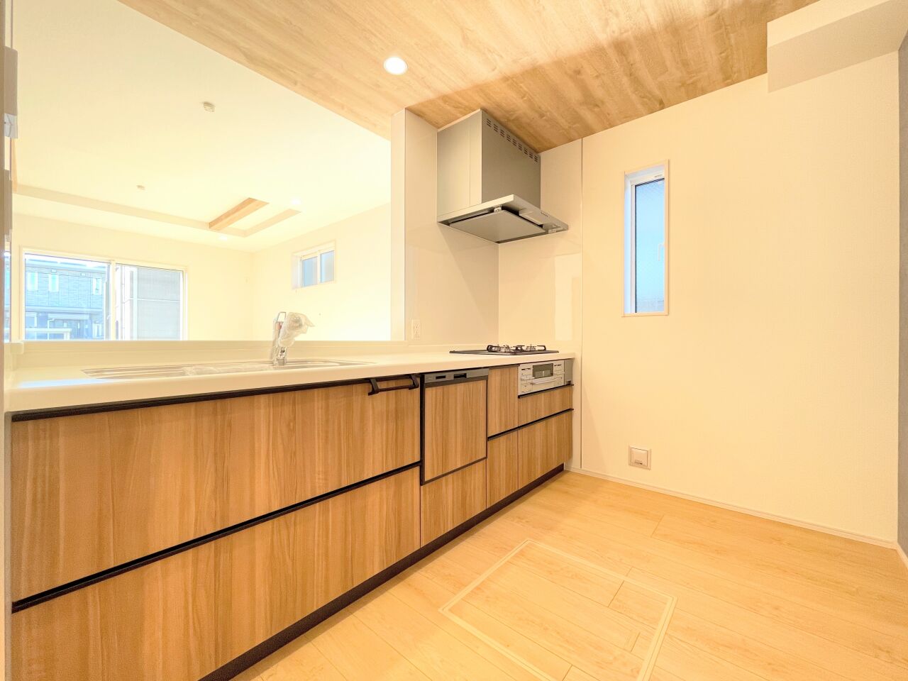 名古屋市中川区打出1丁目に誕生する全4棟分譲のうち、2号棟新築一戸建てのご紹介です。延床面積106.82㎡、ゆとりある3LDKに加えウォークインクローゼットや床下収納など豊富な収納を備え、マルチスキップフロアを採用した開放感ある間取りが魅力です。LDKは15帖以上あり家族が自然と集う快適空間を実現。トイレは2か所に設置されており、朝の忙しい時間も安心です。耐震性に優れた木造2階建でフラット35S対応、建築確認済証ありで安心してご入居いただけます。敷地面積は159.11㎡と広く、普通車2台分の駐車が可能。北側道路に接道し、前面道路幅も確保されています。交通は名古屋市営地下鉄東山線「高畑」駅まで徒歩20分、近鉄名古屋線「伏屋」駅まで徒歩24分、また市バス「打出町」停が徒歩4分にあり、通勤通学に便利です。周辺環境も良好で、保育園・小中学校・公園・スーパー・医療機関・コンビニなど生活利便施設が徒歩圏内に揃い、子育て世帯にも快適な住環境が整っています。完成は2026年1月予定で、お引渡しは2月中旬以降となります。新しい暮らしを安心と快適で支える住まいをぜひご検討ください。