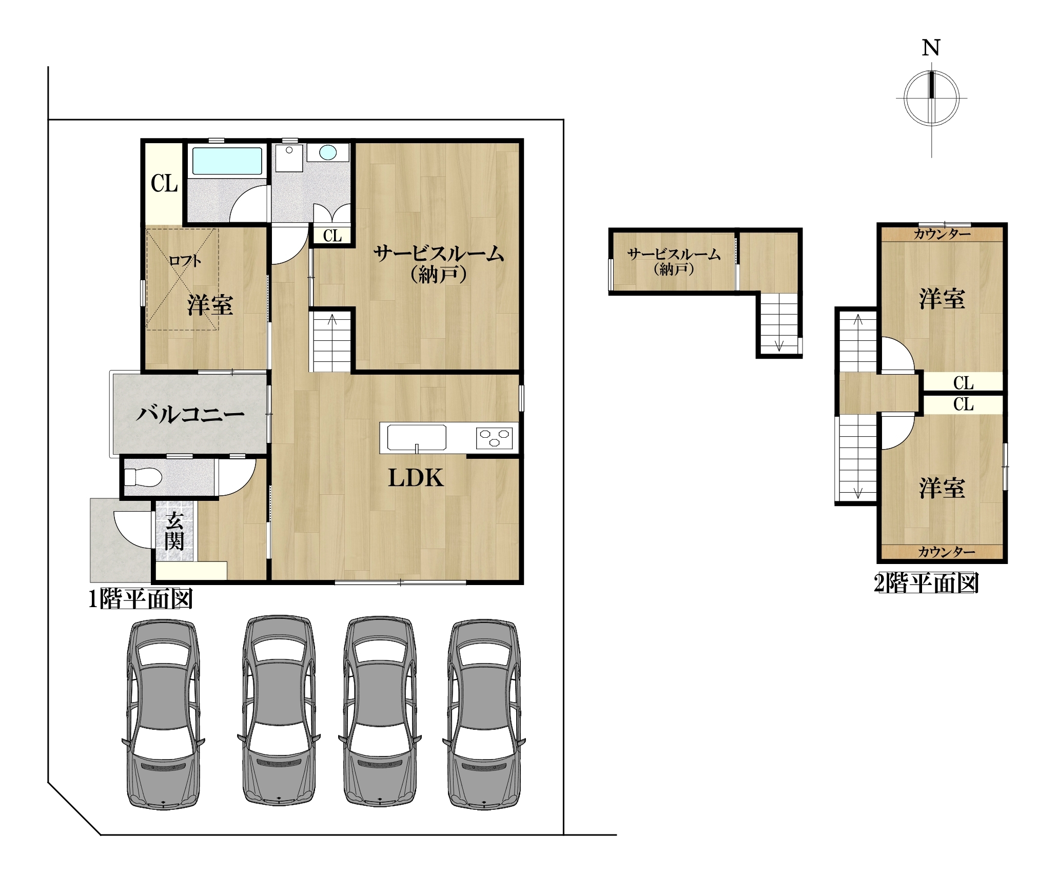 この物件は名古屋臨海高速鉄道「港北」駅から北方向へバス約9分、築1年の中古一戸建てです。周辺は第2種中高層住居専用地域に該当します。主として中高層住宅の良好な環境を守るための地域です。病院、大学などのほか、1500㎡までの一定のお店などや事務所などが建てられます。イオンモール名古屋茶屋店まで約850m、ドラッグユタカ南陽店まで約550m、南陽病院まで約650m、ファミリーマート一宮木曽川七ノ通店まで約190mなど、買い物・医療・コンビニも徒歩圏内に揃っており、生活利便性が高い立地です。南陽小学校まで徒歩約5分、港明中学校まで徒歩約7分で子育て世帯にも安心な環境です。学校行事の際も車を使わずに済みそうですね。駅までの道のりはほぼ平坦で、区画も整理されており安全・安心です。敷地は約140.34㎡(約42.45坪)、南側と西側の道路にに接道しています。建物は木造2階建て、延床約88.3㎡の3LDK+Sで、駐車スペースは4台分確保されており、並列駐車も可能です。来客時やご家族での複数台所有にも安心して対応可能です。
