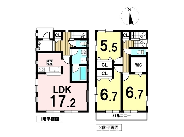 この物件は名鉄津島線「七宝」駅から徒歩38分、海部郡大治町大字西條字狐海道にある「大治町西條狐海道第15 新築分譲住宅」全4棟の1号棟です。周辺は第1種住居専用地域(一部、二種住居専用地域を含む)に該当し、住居の環境を守るためのエリアです。3000㎡までの店舗、事務所、ホテルなどは建てられます。大治西小学校まで徒歩14分、大治中学校まで徒歩28分。駅までの道のりはほぼ平坦。区画はほぼ整理されています。敷地は土地面積は172.06㎡(52.04坪)。北側幅員約3.9mの道路と西側幅員約2.0mの道路に接道しています。接道する道路の幅員が4m未満のためセットバックが必要です。建物は木造2階建て、間取りは延床面積が90.72㎡の3LDK。駐車スペースは2台分です。延長敷地で縦列駐車になりますが、目の前がすぐ道路ではないのでお子様が飛び出してしまうリスクも軽減できます。玄関横には収納付ですのでお子様の外遊び用のおもちゃや日用品のストック置場としても使えそうです。対面式のキッチンでご家族とのコミュニケーションも大切にしながらお料理ができますね。2階には洋室が3部屋で全室収納付です。