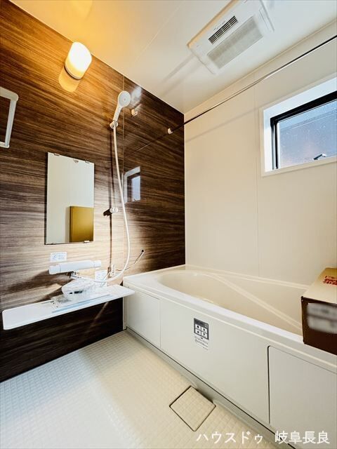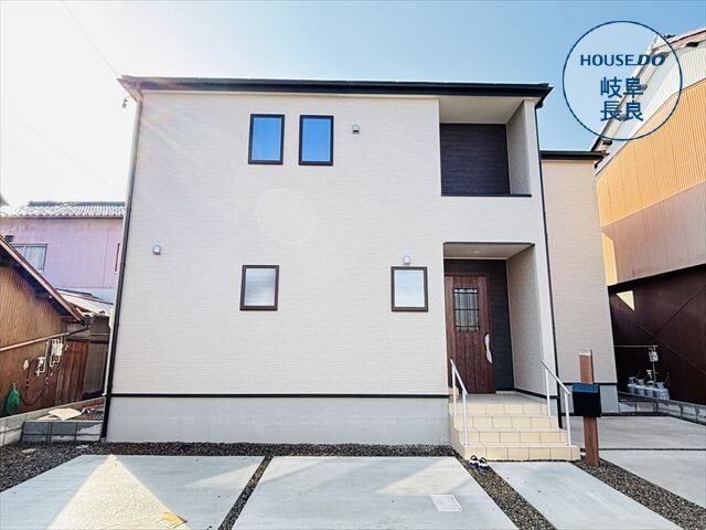 この物件は名鉄各務原線「手力」駅から徒歩約10分、岐阜市手力町にある「岐阜市第2手力町新築分譲住宅」全2棟の1号棟です。周辺は準工業地域に該当します。主として工業の業務の利便の増進を図る地域で、住宅やお店は建てられますが学校や病院、ホテルなどは建てられません。クスリのアオキ芋島店まで約770m、ファミリーマート岐阜芋島店まで約570m、くらまえ診療所まで約1080mなど生活施設が徒歩圏内に充実した環境。長森南小学校まで徒歩約9分、長森南中学校まで徒歩約21分で通学も安心です。敷地は約149.65㎡(約45.26坪)、北側幅員約5.4mの道路に約12.65m接道しています。建物は木造2階建て・延床約108.49㎡の4LDK。主要採光は南向き。間取りはLDKにカウンターキッチンを備え、浴室乾燥機や追焚機能、温水洗浄便座、ディンプルキー、モニタ付インターホンなど充実した設備を完備。全居室収納や2箇所のウォークインクローゼット、インナーバルコニーも嬉しいポイントです。車種により駐車も可能で、フラット35Sに対応しており将来の資金計画にも安心。建築性能評価書も取得済みで安心です。