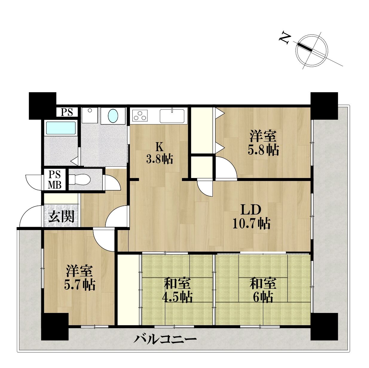 この物件は名古屋臨海高速鉄道「稲永」駅から徒歩約17分、1987年2月築のSRC造りのマンション「ニューコーポ宝神」です。周辺は工業地域に該当します。住居の環境を守るための地域と定められています。一戸建て・マンションや事業所などが立ち並んでいます。ベイシア フードセンター名古屋みなと店まで約1600m、ナフコ宝神店まで約1300m、ウエルシア名古屋十一屋店まで約900m、山口医院まで約1100m(車で約5分)など、各種生活施設は徒歩(車で)約圏内に揃っている生活に便利な住環境です。港西小学校まで徒歩約6分、宝神中学校まで徒歩約2分と子育て世帯にも嬉しい環境です。学校行事の際も車を使わずに済みそうですね。駅までの道のりはほぼ平坦。区画はほぼ整理されています。専有面積は約76.06㎡。12階建ての12階部分で間取りは4LDK。管理費は7,500円/月、修繕積立金は6,000円/月。駐車場は無料で使用可能、車種により駐車できます。南向きでバルコニーは約26.24㎡、角部屋のため日当たり・眺望良好です。ペット相談可能です。