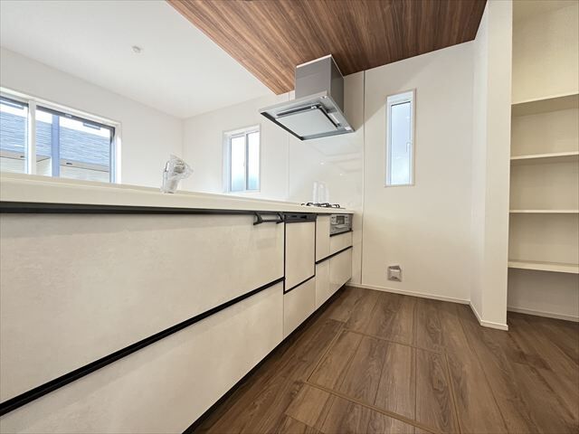 この物件は名古屋市港区大西2丁目にある「茶屋新田13期」全2棟の1号棟 新築分譲住宅です。名古屋臨海高速鉄道あおなみ線「港北」駅へはバス乗車約19分、南陽町停まで徒歩約7分。周辺は第一種低層住居専用地域に該当し、低層住宅の良好な環境を守る地域です。小規模なお店や事務所を兼ねた住宅や小中学校などが建てられます。わんぱく保育園まで徒歩約6分、イオン南陽店まで徒歩約15分、名古屋福田郵便局まで徒歩約6分、大西公園まで徒歩約6分、堂満医院まで徒歩約12分と周辺施設も点在しています。南陽小学校まで徒歩約14分、南陽東中学校まで徒歩約18分の環境です。敷地面積は約161.76㎡(約48.93坪)、北側幅員約6.0mの公道に接道した整形地です。建物は木造2階建、延床面積約103.50㎡の4LDK。LDKは約18.5帖、対面式オープンキッチンとパントリーを備え、家事動線にも配慮された間取りです。2階には洋室4室を配置し、全居室にクローゼットを設け収納力も確保。インナーバルコニーや南庭など、屋外空間も充実しています。駐車スペースは普通車3台分並列駐車可能で複数台所有のご家庭にも対応。