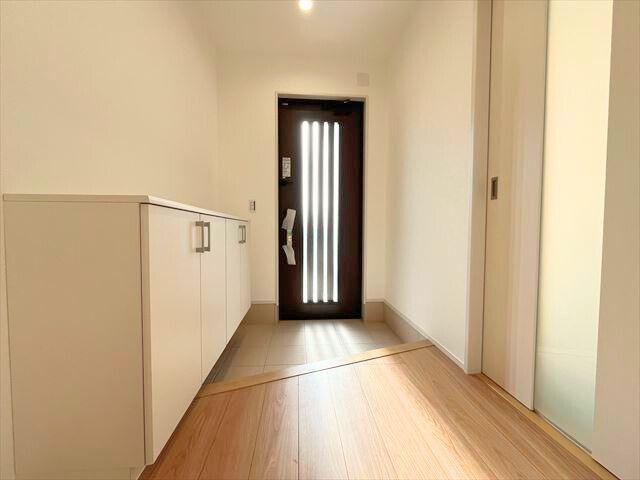 この物件は近鉄名古屋線「阿倉川」駅から徒歩約36分、三重県四日市市小杉町にある「グローバルガーデン四日市市小杉町」全3棟の1号棟です。周辺は第一種住居地域に該当します。住環境が守られたエリアで、一戸建てやマンションが立ち並ぶ落ち着いた街並みです。大谷台小学校まで徒歩約14分、山手中学校まで徒歩約27分です。駅までは平坦な道のりで、区画整理も進んだエリアです。敷地は約169.44㎡(約51.25坪)、南側幅員約5.0mの公道に接道し、東側幅員約4.0mの公道にも接道しています。二方向が道路に面した角地ならではの、ゆとりある開放的な雰囲気が魅力の敷地です。また、南側前面道路なので採光も良好です。建物は木造1階建て、延床約76.18㎡の3LDKです。駐車スペースは普通自動車2台分を確保。2WAYキッチンやカウンターキッチン、食洗機、浴室暖房、浴室乾燥機、室内物干機など設備が充実し、日々の家事を快適にサポートしてくれます。南向きの整形地で陽当たりも良好。平屋ならではのコンパクトで暮らしやすい住空間が魅力の住まいです。