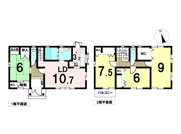 この物件は名鉄尾西線「奥町」駅から徒歩約11分、2000年(平成12年)4月築の中古一戸建てです。周辺は準工業地域に該当します。主として工業の業務の利便の増進を図る地域で、どんな工場でも建てられます。住宅やお店は建てられますが、学校、病院、ホテルなどは建てられません。スーパー三心玉ノ井店まで約280m、ナフコ不二屋木曽川店まで約280m、ゲンキー玉ノ井店まで約410m、セブンイレブン一宮奥町店まで約300m、上林記念病院まで約570mなど、各種生活施設が徒歩10分圏内に揃っています。奥小学校まで徒歩約7分、奥中学校まで徒歩約10分と子育て世帯にも嬉しい環境です。学校行事の際も車を使わずに済みそうですね。駅までの道のりは平坦で、区画はほぼ整理されています。敷地は土地面積約135.31㎡(約40.93坪)、南側幅員約3.8mの道路に接道しています。建物は木造2階建て、延床面積約109.3㎡の4LDK。駐車スペースは普通車1台分確保されています。全居室6畳以上で、ウォークインクローゼットやクローゼット、シューズボックスも完備され、整理整頓しやすい空間です。