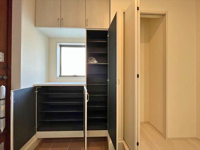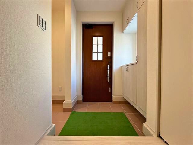 近鉄名古屋線「北楠」駅から南東方向へ徒歩約9分にある「リーブルガーデン四日市市楠町北五味塚第10」全7棟の3号棟です。2026年3月完成予定の新築一戸建てで、周辺は第2種中高層住居専用地域に該当し、中高層住宅の良好な住環境を保護するための地域と定められています。主に一戸建てやマンションなどが立ち並んでいます。楠小学校まで徒歩約5分、楠中学校まで徒歩約7分と、子育てにも安心。学校行事の際も無理なく通える距離ですね。駅までの道のりはほぼ平坦な地勢となっております。敷地は土地面積が約188.99㎡(約57.16坪)あり、北側幅員約5.0mの広い公道に約12.68m接道した整形地です。建物は木造2階建て、間取りは延床面積約115.1㎡のゆとりある4LDK。LDKは18畳以上の広さを確保し、全居室が南向きの明るい設計です。シューズインクロークやウォークインクローゼット、さらに勝手口の付いた2WAYキッチンなど、日々の家事をスムーズにする充実した設備が魅力の住まいです。インナーバルコニーも完備しており、急な雨の際も安心ですね。お問い合わせを心よりお待ちしております。