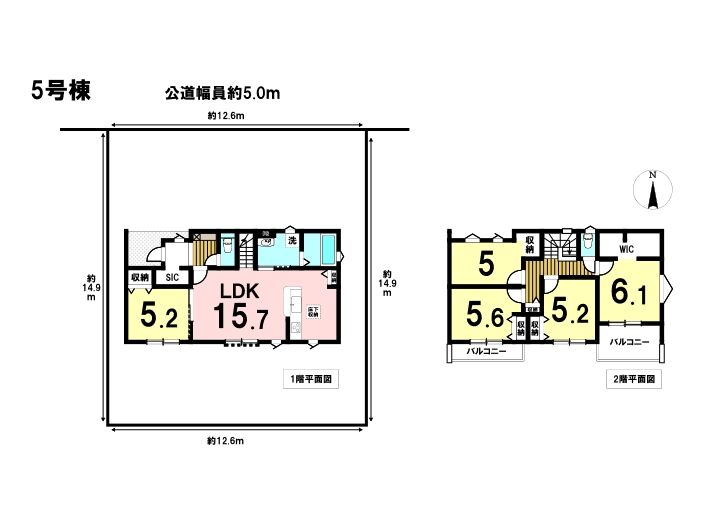 近鉄名古屋線「北楠」駅から南東方向へ徒歩約9分にある「リーブルガーデン四日市市楠町北五味塚第10」全7棟の5号棟です。2026年9月完成予定の新築一戸建てで、周辺は第2種中高層住居専用地域に該当し、中高層住宅の良好な住環境を保護するための地域と定められています。主に一戸建てやマンションなどが立ち並んでいます。楠小学校まで徒歩約6分、楠中学校まで徒歩約8分と、子育てにも安心。学校行事の際も歩いて行ける距離となっております。駅までの道のりはほぼ平坦。敷地は土地面積が約189.13㎡(約57.21坪)あり、北側幅員約5.0mの公道に約12.68m接道した整形地です。建物は木造2階建て、間取りは延床面積約106㎡の5LDK。全居室収納に加え、シューズインクロークやウォークインクローゼット、キッチンには便利な食品庫を備えています。南向きで陽当りも良好。リビング階段を採用し、ご家族のコミュニケーションも自然と増える機能的な住まいです。平日もご案内可能です、ご予約お問い合わせを心よりお待ちしております。