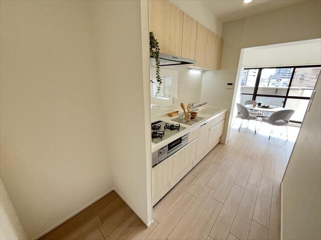この物件は名古屋市名城線「新瑞橋」駅から東方向へ徒歩約5分、名古屋市瑞穂区彌富通1丁目にある、1999年10月築のSRC造マンションです。総戸数29戸の落ち着いた規模感で、4階部分の南向き角部屋につき陽当りや通風も良好。マックスバリュエクスプレス平子店まで約600m、ドラッグスギヤマ平子店まで約430m、水野内科まで約400mと日常利用しやすい施設が揃っています。駅近のため通勤・通学にも便利な立地で、名城線と桜通線の2路線が利用可能です。弥富小学校まで徒歩約14分、萩山中学校まmで徒歩約7分と中学校行事の際は車を出さずに済みそうですね。専有面積は壁芯約75.86㎡、間取りはゆとりある3LDKでLDKは15帖以上を確保しています。2026年1月にキッチン・浴室・トイレ・洗面・給湯器交換、床や壁、天井、建具まで室内フルリフォーム済みのため、手直し不要で新生活を始められます。管理は全部委託の巡回管理で、管理費7,500円、修繕積立金7,700円。オートロックや宅配BOX、エレベーターも備わり、駐車場は月額12,000円でご利用いただけます。
