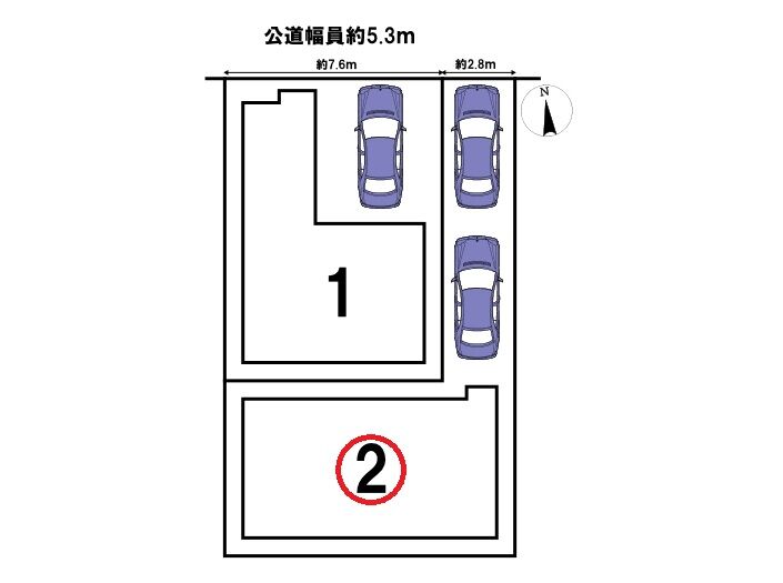 北側5.3m公道に2.8m接道