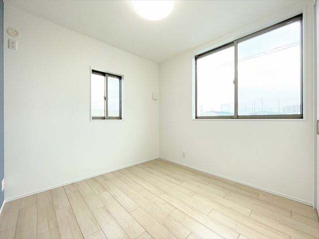 この物件は名古屋臨海高速鉄道「荒子川公園」駅から徒歩約50分、名古屋市港区東茶屋2丁目にある新築分譲住宅全1棟のC号棟です。周辺は第一種住居専用地域に該当し、住居の環境を守るための地域です。3000㎡までの店舗・事務所・ホテルなどは建てられ、住宅を中心に落ち着いた街並みが形成されています。敷地は約153.79㎡で、東側幅員約11.0mの公道に面した平坦な整形地です。建物は鉄骨造2階建て、延床面積約92.84㎡の3LDK。LDKは15帖以上を確保し、リビング階段を採用。全居室収納やウォークインクローゼット、食品庫を備え、収納力にも配慮されています。駐車スペースは普通車2台分あり。オール電化仕様で、食器洗浄乾燥機や浴室乾燥機など設備も充実した住まいです。ナフコ不二屋当知店まで約2480m、クスリのアオキ東茶屋店まで約10m、やまだ歯科まで約230m、南陽中央公園まで約470m、ローソン港区茶屋新田店まで約360m、名古屋秋葉郵便局まで約580mと、日常生活に利用しやすい施設が点在しています。南陽小学校まで徒歩約3分、南陽東中学校まで徒歩約5分と近く、子育てにも安心です。