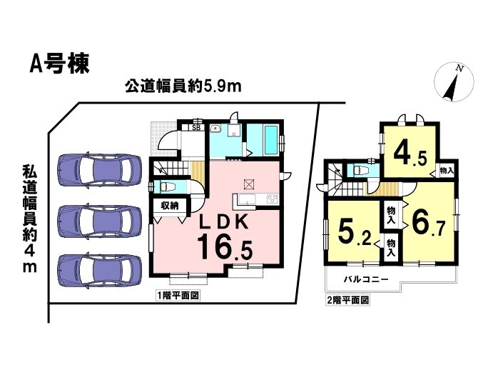 この物件は名古屋市鶴舞線「赤池」駅から徒歩約17分、名古屋市緑区東神の倉2丁目にある「ハートフルタウン名古屋市緑区東神の倉2丁目 新築分譲住宅」全1棟のA号棟です。周辺は第1種低層住居専用地域に該当し、低層住宅の良好な環境を守る地域です。小規模なお店や事務所を兼ねた住宅や小中学校などが建てられます。店舗、飲食店は建築できません。ヤマナカ 白土フランテ館まで約1,180m、ドラッグスギヤマ 神の倉店まで約1,620m、ひがみ内科まで約440mと施設が点在。神の倉小学校まで徒歩約13分、鎌倉台中学校まで徒歩約72分です。敷地は約132.57㎡(約40.10坪)、北側幅員約5.9mの公道と西側幅員約4.0mの私道に接する角地で、陽当たり・通風良好です。地勢は平坦、建物は木造2階建て、延床約79.51㎡の3LDKです。LDKは約16.5帖、3面採光で明るい空間が広がります。全室フローリング仕様で全居室収納付き、トイレは2箇所に設けられています。駐車スペースは普通車並列3台分のカースペースを確保しています。