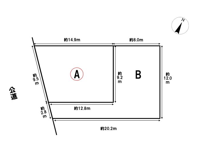 南西側9m公道に9.5m接道