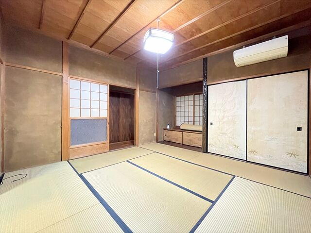 この物件はJR関西本線「春田」駅から徒歩約9分、1974年12月築の中古一戸建てです。周辺は近隣商業地域に該当し、近隣の住民が日用品の買い物をする店舗等の業務の利便の増進を図る地域です。住宅や店舗の他に小規模の工場も建てられます。アオキスーパー戸田店まで徒歩約10分(約740m)、スギドラッグ春田店まで徒歩約7分(約560m)、春田クリニックまで徒歩約6分(約420m)など、各種生活施設が徒歩圏内に揃っている生活に便利な住環境です。戸田小学校まで徒歩約5分、供米田中学校まで徒歩約9分で子育て世帯にも嬉しい環境。学校行事の際も車を使わずに済みそうですね。駅までの道のりはほぼ平坦で通勤・通学にも便利な立地です。敷地は約168.59㎡(約50.99坪)で、西側幅員約5.3mの道路に約14.00m接道しています。建物は木造2階建て、間取りは延床面積約210.99㎡の6LDK+S。駐車スペースは普通車1台分確保されています。全居室8帖以上のゆとりある空間設計に加え、和室や床下収納、庭なども備えた住まいです。