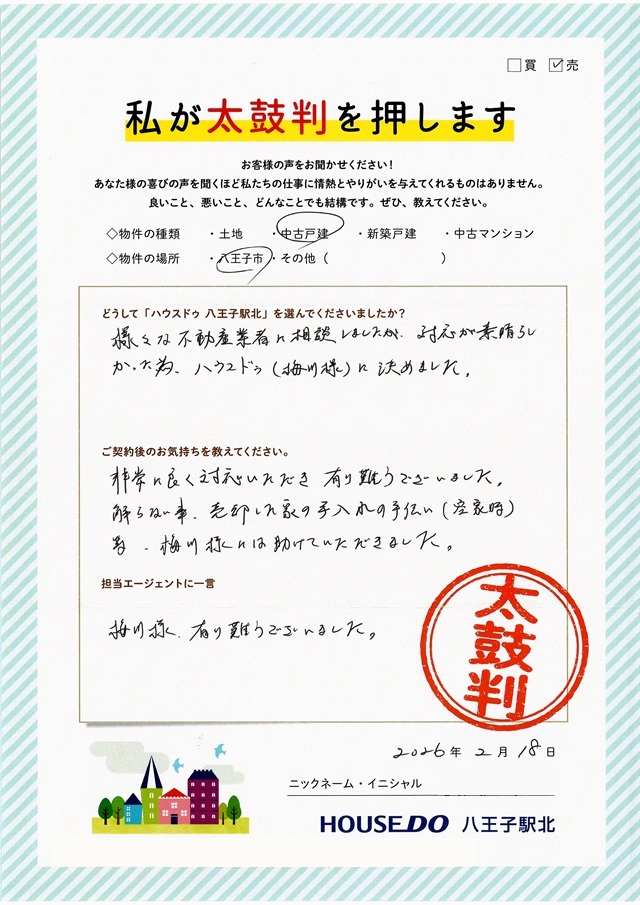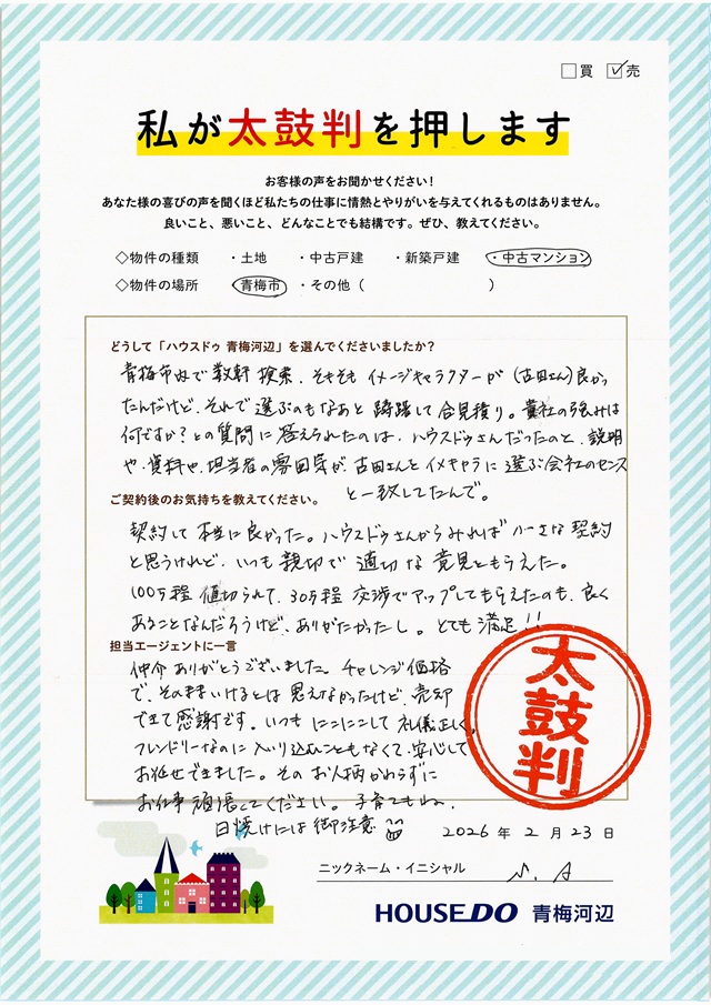 ファミリアホームサービスで不動産を売却されたお客様の声